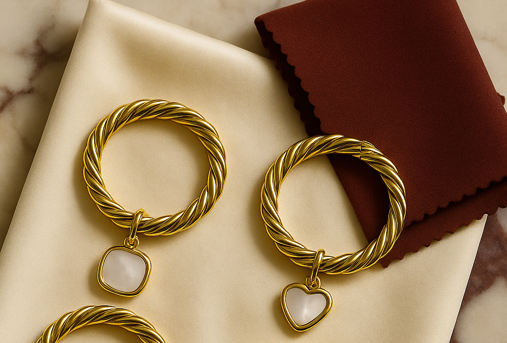 To clean, hand wash gently with warm, soapy water. Dry with a soft microfiber cloth to preserve their lustrous finish.